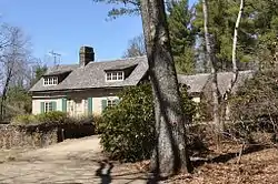 The house was designed by Joseph Everett Chandler, a noted Boston architect who oversaw the restoration of the Paul Revere House and the House of Seven Gables, and built in 1933. The house has elements of English Revival, resembling in some ways a Cotswold cottage, however with Italian features. The property was previously owned by Ellen Ballou, a historian and author.[2]
