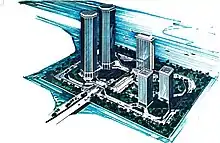 He wanted to create a development that would "Make Nigeria Proud",and engaged Minoru Yamasaki the architect of Manhattan's World Trade Centre 'Twin Towers' building. Starchitect Yamasaki's replica twin towers comprised the flagship iconic building on the main island.
