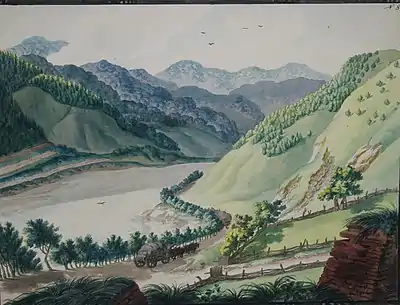 In 1716, Captain Friedrich Schwantz von Springfels, a mathematician trained at the University of Jena, had uncovered the remains of a Roman road running along the Olt at Cozia. He was therefore able to persuade his superiors that the banks were usable for horse transportation at any time of the year.[183] He described the path leading from Islaz to Râmnicu Vâlcea as Via Trajani, from Trajan.[184] Between 1717 and 1722, Steinville oversaw the construction of Via Carolina, a modernized road linking the Turnu Roșu Pass (and, through it, Transylvania) to Călimănești.[185] In tandem, the authorities also rebuilt and enlarged the passage through the Vâlcan Mountains, linking the Transylvanian mountainous enclave, Țara Hațegului, with Craiova and Vidin.[186]