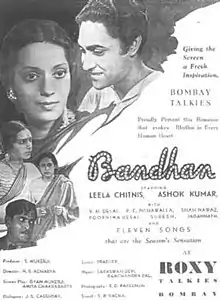 Bandhan is a 1940 Indian Hindi-language film directed by N.R. Acharya and starring Leela Chitnis, Ashok Kumar and Suresh. It was the second highest grossing Indian film of 1940.[1] It was produced by Bombay Talkies.[2][3]