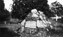 Spenser McTaggart Hopkins, the son of separationist Thomas Hollis Hopkins, buried Banfield on his Dunk Island selection, on elevated ground north of the house, and erected a cairn over the grave. He also commissioned a marble tablet for the cairn, inscribed with a quote from Thoreau. Bertha Banfield lived for another ten years, spending her time between Townsville and Victoria. When she died in 1933, Spenser Hopkins placed her ashes by her husband's grave and added a second tablet to the cairn. The grave has remained intact on Dunk Island despite changing ownership and land use.[1]