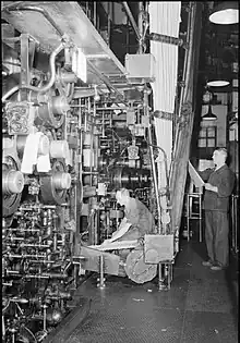 A banging out ceremony was also held to mark retirements. In newspapers retiring employees would be walked through the print room by their colleagues whilst the printers hit their benches and machinery.[2] The practice continues in some modern newsrooms. While the printing is now usually done offsite the newsroom staff provide the beat for the banging out by hitting their desks as the retiree walks out.[6] Such a ceremony was performed en-masse to mark the end of the print edition of The Independent in 2016.[7] The tradition is also carried out in other industries such as engineering. Banging out ceremonies were held to mark the closure of BAE Chadderton in Oldham in 2012 and the end of aircraft manufacture at Brough Aerodrome in December 2020.[8][9]