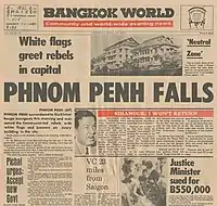 The Bangkok World was an English-language daily newspaper in Thailand founded in February 1957 whose first editor was Mr. Darrell Berrigan, a United Press correspondent in Asia, and Far East correspondent for The Saturday Evening Post. It replaced the newspaper Liberty, founded by the Thai publishing magnate, Mr. Manit Vasuvat (Thai: นาย มานิต วสุวัต), which was published between 5 September 1945 and 29 December 1956.[1][2][3][4]