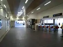 As part of the project, Bankstown station will be upgraded to have an additional at-grade station entrance at the eastern end of the existing platforms, which will align with The Appian Way and Restwell Street.[8] The new entrance will also provide access to Sydney Metro platforms, which will be built east of the new entrance over the road connection between North and South Terraces. The existing station entrance will be retained and the existing platforms is proposed to be retained and extended westwards. The former parcels office, as well as a crossover at the eastern end of the station, will be removed for construction.[9]
