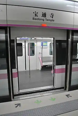 Baotong Temple Station (Chinese: 宝通寺站), is a station of Line 2 of Wuhan Metro. It entered revenue service on December 28, 2012. It is located in Hongshan District.[1] Baotong Temple is located to the immediate north of the station.