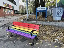 An AIDS memorial is installed in the park.[4] The memorial was vandalized in 2023.[5]