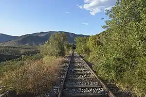 The Barca d'Alva–La Fuente de San Esteban railway is a closed Iberian gauge line which connected the Barca d'Alva railway station in the Douro line (northeastern Portugal) to the Spanish railway network. Passenger and cargo trains ran from Porto to Salamanca from its opening in 1887 until its closure on the Spanish side in 1985, with the Portuguese side also subsequently truncated to Pocinho three years later.[1]