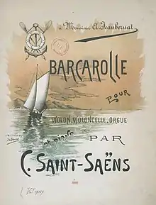 Camille Saint-Saëns's Barcarolle in F major, Op. 108 is a chamber composition for a quartet consisting of violin, cello, harmonium (or organ) and piano. Composed in 1898, the work also exists in a version for violin, cello, viola and piano created by the composer in 1909.[1][2][3]