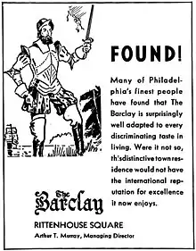 - 1 2 Belden, Tom (November 5, 1994). "Barclay Will Make Transition To Condos. The Luxury Hotel Was Sold For $4.3 Million. Its Owner Intends To Convert It 'In A First-class Way.'". The Philadelphia Inquirer. Philadelphia Media Network (Digital) LLC. Retrieved 17 September 2014.
