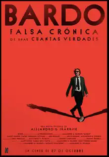 Bardo, False Chronicle of a Handful of Truths (Spanish: Bardo, falsa crónica de unas cuantas verdades), or simply Bardo, is a 2022 Mexican epic psychological black comedy-drama film co-written, co-scored, edited, produced, and directed by Alejandro G. Iñárritu.[1] The film stars Daniel Giménez Cacho alongside Griselda Siciliani, and follows a journalist/documentarian who returns to his native country of Mexico and begins having an existential crisis in the form of dreamlike visions. The title refers to the Buddhist concept of the bardo, a liminal state between death and rebirth.[2] It is Iñárritu's first film to be fully filmed in Mexico since Amores perros in 2000.