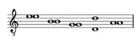 | Antoine Carre (France, 1671) Robert de Visée (France, 1682)[12] Nicolas Derosier (Netherlands, 1690) | ![]() | E - B - G - D (in octave) - A |