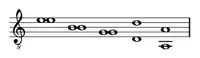 | Girolamo Montesardo (Italy, 1606) Benedetto Sanseverino (Italy, 1620) Giovanni Paolo Foscarini (Italy, 1640) Francisco Guerau (Spain, 1694) | ![]() | E - B - G - D (in octave) - A (in octave) |