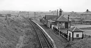 The station opened on 26 June 1873,[1] and closed permanently to passengers on 5 November 1962.[1] Freight services continued on the line until 1964.[2] The station was the only intermediate station on the five mile branch from Lugton to Beith Town.[2] Today the line to Barrmill (now singled) is still in existence until just before the site of the station, where it then heads south along the original route of the Lanarkshire and Ayrshire Railway until it reaches DM Beith.