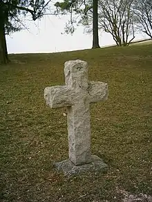 Stone cross marking what is believed to be the gravesite of Bartholomew Gosnold