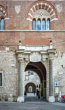 The Basilica of San Pietro (St Peter) de Dom was Brescia's summer cathedral, in contrast to the adjacent Basilica of Santa Maria Maggiore de Dom, the winter cathedral.[1] The appellation de Dom comes from the episcopal domus, where the bishop resided with the urban clergy, still identifiable in the Via Mazzini directly behind the cathedrals.