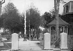 In 1878 two men, Michael and Bernard Jodd, were hired to build a brick wall around the cemetery, which was previously enclosed by a picket fence, but before it was completed, both men contracted yellow fever and died in September 1878. They were interred in the cemetery and the wall was completed by local laborers. The wall was surfaced with stucco in 1936. The entrance on North 19th Street is protected by a double iron gate built in 1933.[3][4]