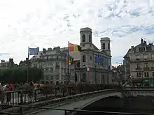 The Battant bridge with the flags of Besançon, France, and Europe, August 2007.