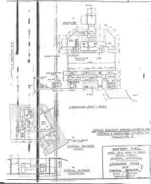 The four gun battery was scattered over an area 1 km x 0.75 km. Some local civilians were evicted during the construction period, others after it was completed. Roads were closed and access restricted.[1]: 35