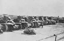 The attack on Mount Laquatat and the pass between Mount Laquatat and Mount Cochen (where the defenders were commanded by Colonel Luziani) was renewed by the 1st Battalion, Royal Fusiliers behind the four Matildas, to break through the last obstacle before the Agordat plain.[19] The final assault took place from 11:00 a.m. – 2:00 p.m. with the Anglo-Indian infantry preceded by Matilda tanks which crushed the Italian defences within a few minutes, overwhelmed the Italian artillery and destroyed eleven M11/39 tanks and Fiat L3 tankettes, some of which were crewed by German volunteers from ships in the port of Massawa.[20]