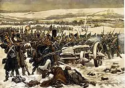 ![]() Napoleon's crossing of the Berezina, a 1866 painting by January Suchodolski, oil on canvas, National Museum, Poznań | |||||||