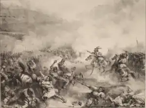 Otto August Mankell's painting of the battle depicting the cavalry attacks against the Swedish right wing.