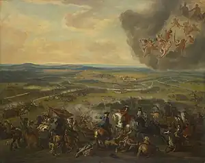 Defeat at Ramillies in May 1706 forced Louis XIV to recall Vendôme from Italy, leaving the less competent La Feuillade in command. On 15 August, Prince Eugene began his advance on Turin, which he reached on 29th in a series of marches seen as comparable in skill and execution to Marlborough's more famous march to the Danube in 1704.[22] After the siege was lifted in September, remaining French forces in Italy were withdrawn and fighting in Northern Italy ended with the March 1707 Convention of Milan.[23]