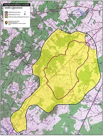 Map of Cedar Mountain Battlefield core and study areas by the American Battlefield Protection Program