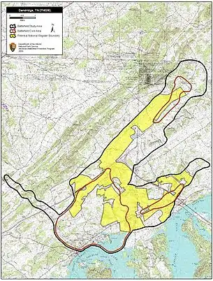 Map of Dandridge Battlefield core and study areas by the American Battlefield Protection Program.
