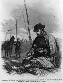 On December 26–27, Grierson's division moved south along the Mobile and Ohio, destroying track and culverts. An enemy force was reported at Okolona, but it withdrew to the south as the Union column approached. At Okolona, the raiders tapped the telegraph line and discovered that Confederate reinforcements were being sent from Mobile, Alabama and other points along the railroad. Getting information from deserters that the reinforcements would not arrive until 11:00 am, Grierson determined to attack the Confederate force at Egypt Station on the morning of December 28. Grierson estimated the Confederate force at 1,200–2,000 men and four train-mounted guns.[11] Kargé's brigade marched at 7:00 am that morning, brushed aside the Confederate cavalry, and encountered a defense line about 0.5 mi (0.8 km) north of Egypt Station.[10]