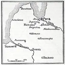 The Battle of Ekau was a battle of the initial phase of the French invasion of Russia. Napoleon's troops from the X Corps of Marshal MacDonald, who had the advantage, defeated the troops of Alexander I defending under the command of General Löwis.[1]