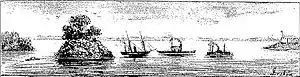 The Battle of Jaguarí was a naval confrontation in the Paraguayan War between Brazilian and Paraguayan flotillas, which took place on March 23, 1866 at the mouth of the Jaguari River, Paraná River. At the time, aboard the steamer Cisnei, were admiral Joaquim Marques Lisboa and generals Osório, Mitre and Flores. The ship was escorted by the ironclad Tamandaré and the gunboats Beberibe and Henrique Martins, and was on a reconnaissance mission on the Paraná River to the mouth of Jaguari. However, at eleven o'clock in the morning, the Paraguayan steamer Gualeguai and a towed boat found the Brazilian flotilla in Jaguari and immediately started bombing them, without causing damage. Only Tamandaré ran aground on the island of Itapiru. Despite the confrontation, the region's recognition proved to be useful to the allies, as the future location for the landing of the Triple Alliance troops that would initiate the invasion of Paraguayan territory was defined.[1]