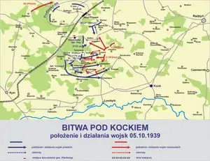 The Battle of Kock was the final battle in the invasion of Poland at the beginning of World War II in Europe. It took place between 2–5 October 1939, near the town of Kock, in Poland.[2]: 12, 84