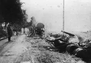 The assault succeeded and the Germans began to retreat, being chased by infantry and cavalry. The rear of the southern wing of the 13th Motorized Infantry Division was attacked by the 'Edward' cavalry brigade, they captured the village of Poznań, including a German artillery battery (which had to be destroyed when the cavalry were forced to withdraw due to them coming under fire from another German artillery battery). Elements of the 13th Motorized Infantry Division began to withdraw. One of the last attacks was by the 29th Motorized Division on the 'Podlaska' Cavalry Brigade positions and the rear of the 'Brzoza' Division. After that both Polish formations withdrew to the south of Krzywda.