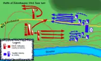 The Polish-Lithuanian relief army of 800 men under Krzysztof Mikołaj "the Thunderbolt" Radziwiłł arrived around 11 May and in turn started to besiege the Swedes; it grew to over 4,000 with 16 cannons by mid-June.[3] The Swedes decided to prioritize the relief of the Kokenhausen siege force.[3] They had been reinforcing it with supplies through the river, but many of them had been captured by Commonwealth troops on 29 May.[3] A major Swedish relief force of about 2,000 under Carl Gyllenhielm had been defeated at Erlaa by 1,000 Poles under Jan Siciński in early June.[3] Emboldened by the victory, other Polish detachments captured some nearby strongholds and harassed the Swedish units.[3] The Poles did not assault Kokenhausen, however, as they were waiting for more artillery, and were content to starve the Swedes out.[3] The Swedes did not give up on securing the site, however, and reinforced to 5,000 the Swedes under Gyllenhielm arrived on the morning of 23 June at Kokenhausen and attempted to break the Polish encirclement.[3]