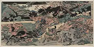 ![]() Battle of Kurikara Pass by Katsukawa Shun'ei | |||||||