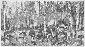 The Battle of Lapua was fought between Swedish and Russian troops on 14 July 1808 at Lapua, Finland. The Russians had set up defences around Lapua. The Swedes tried to outflank and surround the defending Russians. The Björneborg Regiment under Georg Carl von Döbeln distinguished itself during the battle. In the end the Russians managed to retreat, but the victory was an important one for the Swedish as it allowed them to continue their offensive.