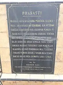 ![]() Plaque to commemorate those killed in the clashes following the 1945 Jalan Bali incident that led to the Battle of Medan | |||||||