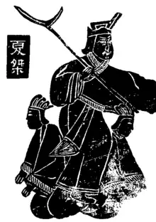 Meanwhile, the Shang clan was gaining support from neighbouring tribes. Their ancestor, Qi, had worked for Yu the Great and was given the territory of Shang. During Tang of Shang's reign, due to agricultural development, the Shang was gaining more and more power. Tang allied with nearby tribes and treated his subjects kindly.[2] He also had the support of Yi Yin. Yi was originally the slave of his father-in-law. When Tang married, Yi Yin became Tang's chef. Yi also analysed the current affairs of the time and became his right-hand man. This was how Yi became known as Yi Yin.[1]