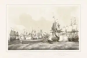 The Battle of Plymouth was a naval battle in the First Anglo-Dutch War. It took place on 16 August 1652 (26 August 1652 (Gregorian calendar))[lower-alpha 1] and was a short battle, but had the unexpected outcome of a Dutch victory over England. General-at-Sea George Ayscue of the Commonwealth of England attacked an outward bound convoy of the Dutch Republic commanded by Vice-Commodore Michiel de Ruyter. The two commanders had been personal friends before the war. The Dutch were able to force Ayscue to break off the engagement, and the Dutch convoy sailed safely to the Atlantic while Ayscue sailed to Plymouth for repairs.[1]