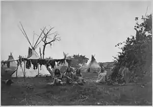 The Indians had not anticipated that the outnumbered soldiers would pursue them, and had set up their camp intending to remain there four days to rest their horses before undertaking a waterless 40-mile passage through the Nebraska Sand Hills. The young men and women had spent all night dancing and were asleep, but were awakened suddenly at 2:00 pm, when a single Sioux warrior signaled from a hilltop that soldiers were approaching. About 1000 warriors mounted their horses and crossed the flat Platte Valley to engage the soldiers.[3]