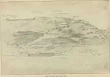 The British climbed up the hill at night and in dense mist.[10] They surprised the small Boer piquet and drove them off the kop at bayonet point. Of the 15 men in the Boer piquet, one was mortally wounded and his grave lies on the hill to this day.[11] Ten British soldiers were wounded in the charge.[1] The surviving Boers retreated down the hill to their camp waking up their fellow Boers by screaming "Die Engelse is op die kop!" (The English are on the hill!). A half-company of British sappers began to entrench the position with a mere 20 picks and 20 shovels (while almost 1,000 soldiers stood around idle) and Woodgate notified Warren of the successful capture of the hilltop.[12]
