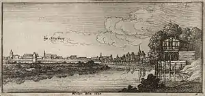 The Rhine river with Strasbourg in distance during the 17th century, by Wenceslaus Hollar