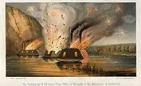 The Battle of Trent's Reach[1] was one of the final major naval battles of the American Civil War. Beginning on January 23, 1865, a powerful flotilla of Confederate warships bombarded Fort Brady along the James River and engaged four Union Navy ships with the intention of breaking through the blockade to attack City Point, the base of General Ulysses S. Grant who was besieging Petersburg, Virginia. After two days of fighting, the rebels withdrew back up the river without completing their objectives.[2]
