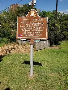 - ↑ "Bayou Vermilion Marker". Historical Marker Database. Retrieved 17 April 2016.