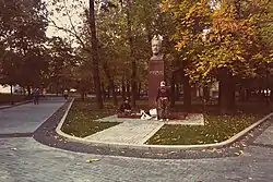 In 1972, a monument of Nikolai Bauman by the sculptor Vladlen Odinokov was installed in the garden. Designed according to Vladimir Klimov's architectural project, it later became one of the symbols of the park.[8] Until 1992, the monument was located on the site of a modern playground, then it was moved to another place.[5][9]