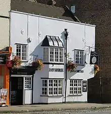 By 1798, the inn was named the "Bay Horse". This name is believed to refer to the horse Bay Malton, who won a major race nearby, at York Racecourse. Some of the windows were altered in the 19th-century.[1] From 1862 until 1874, the pub and its brewhouse were owned by the Institute of the Blessed Virgin Mary. By 1969, the pub was owned by John Smith's Brewery, which restored the ground floor, reusing some of the Victorian fittings.[3]