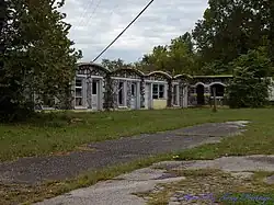 The Bear Creek Motel is a historic motel on United States Route 65 in Bear Creek Springs, Arkansas. It is a single T-shaped stone and concrete building, built in 1936 to replace a wood-framed tourist accommodation that had burned down. The building has a distinctive wave-shaped concrete roof, intended to lure travelers off the road, and houses five guest rooms and an office. The wave shape is continued in the guest rooms, which have barrel-vaulted ceilings, and are also finished in concrete and stone veneer.[2]