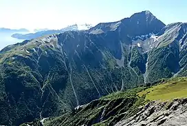 Bear Mountain is a 4,019-foot (1,225 m) mountain summit located in the Kenai Mountains, on the Kenai Peninsula, in the U.S. state of Alaska. The peak is situated in Chugach National Forest, 5 mi (8 km) northeast of Bear Glacier, 2.1 mi (3 km) south-southeast of Marathon Mountain, and 5 mi (8 km) southwest of Seward, Alaska. The peak's local name was reported in 1951 by the U.S. Geological Survey.[3] The months May and June offer the most favorable weather for viewing the mountain. In fair weather, the Harding Icefield can be seen from the summit.