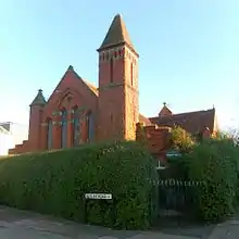 The only church in the area was St Alban's, an Anglican church built between 1910 and 1914 at the junction of Coombe Road and Buller Road. Architect Lacy W. Ridge was responsible for its red-brick Early English Gothic Revival design. It had its own parish until 15 May 1974, when the new Parish of the Resurrection—consisting of St Martin's Church on Lewes Road, St Wilfrid's Church on Elm Grove and St Alban's—was formed.[1] Its deteriorating structural condition led to its closure in 2006,[32] and the Diocese of Chichester declared it redundant on 22 November of that year.[33] Planning permission was granted in 2010 for its demolition and replacement with nine houses. Demolition was authorised in February 2013 and took place later that year.[34][35] The former parish hall, built in 1902–03 at the corner of Riley Road and Bear Road, still stands. By 1990 it had been acquired by Brighton Polytechnic,[4] and it is now a nursery school. Adjacent to the former church is Coombe Road Primary School, which opened in April 1912 and took infants from 1915.[36] As of 2012 it had 317 pupils between the ages of 4 and 11.[37]