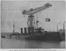 It was used for fitting out ships, installing very heavy items such as boilers, armour and guns.[1] The basin it served was the largest in the world at the time of its completion.[4]